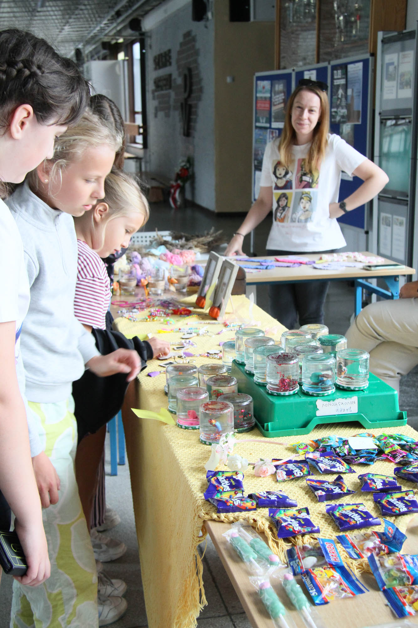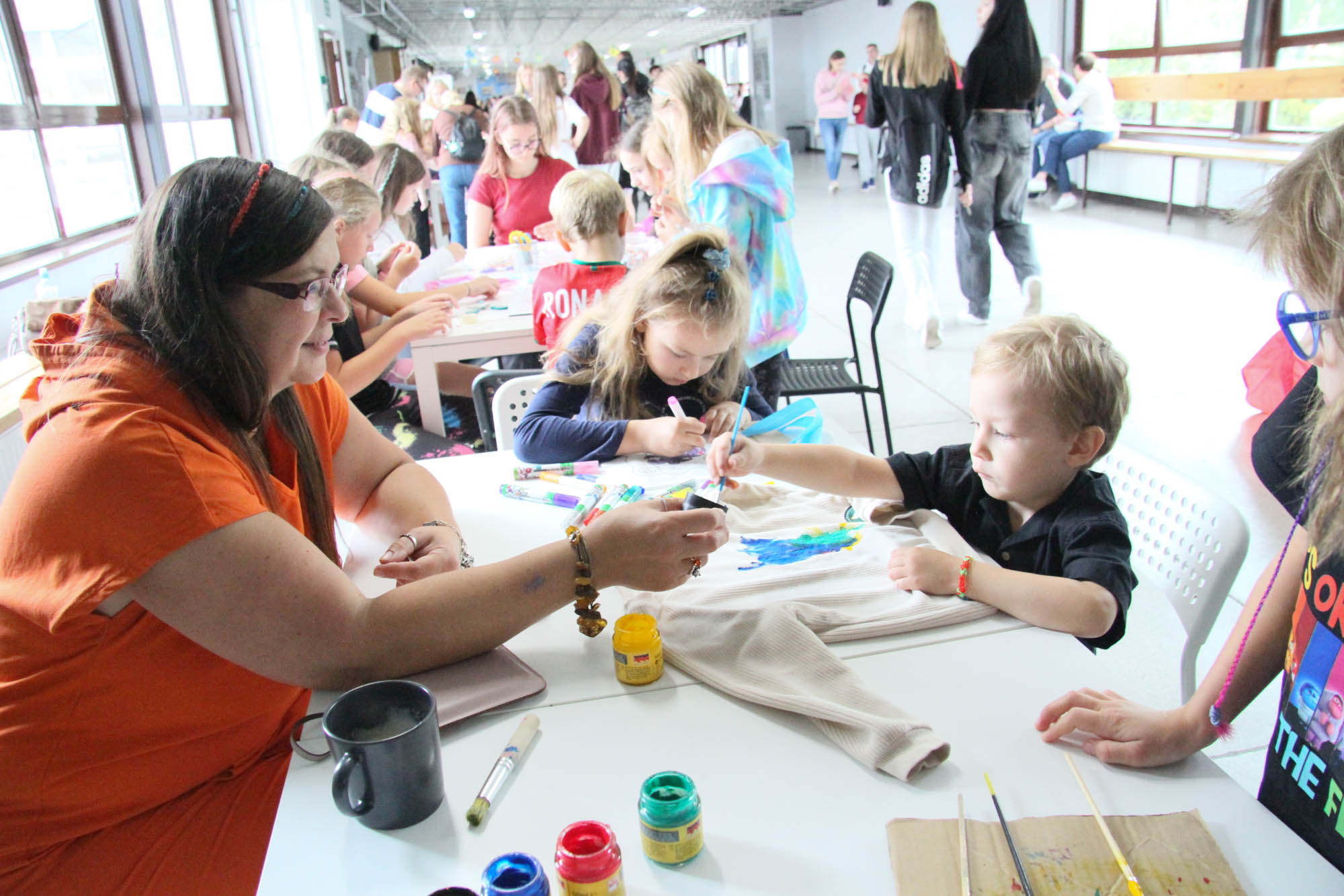 Były dmuchańce, grochówka u strażaków, sportowe konkurencje na świeżym powietrzu i w sali gimnastycznej, zaplatanie warkoczyków, robienie bransoletek, malowanie koszulek, wata cukrowa, popcorn oraz niezwykła kawiarenka ze słodkościami – za którą szczególnie dziękujemy naszym niezastąpionym rodzicom! – i wiele innych atrakcji 😀