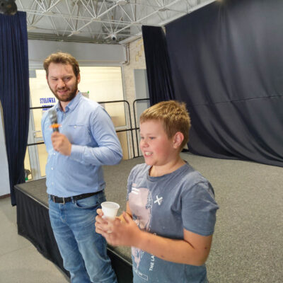 Zgłosiło się 18 uczestników.  Każdy z uczestników opowiedział dowcip i wypił sok z cytryny.