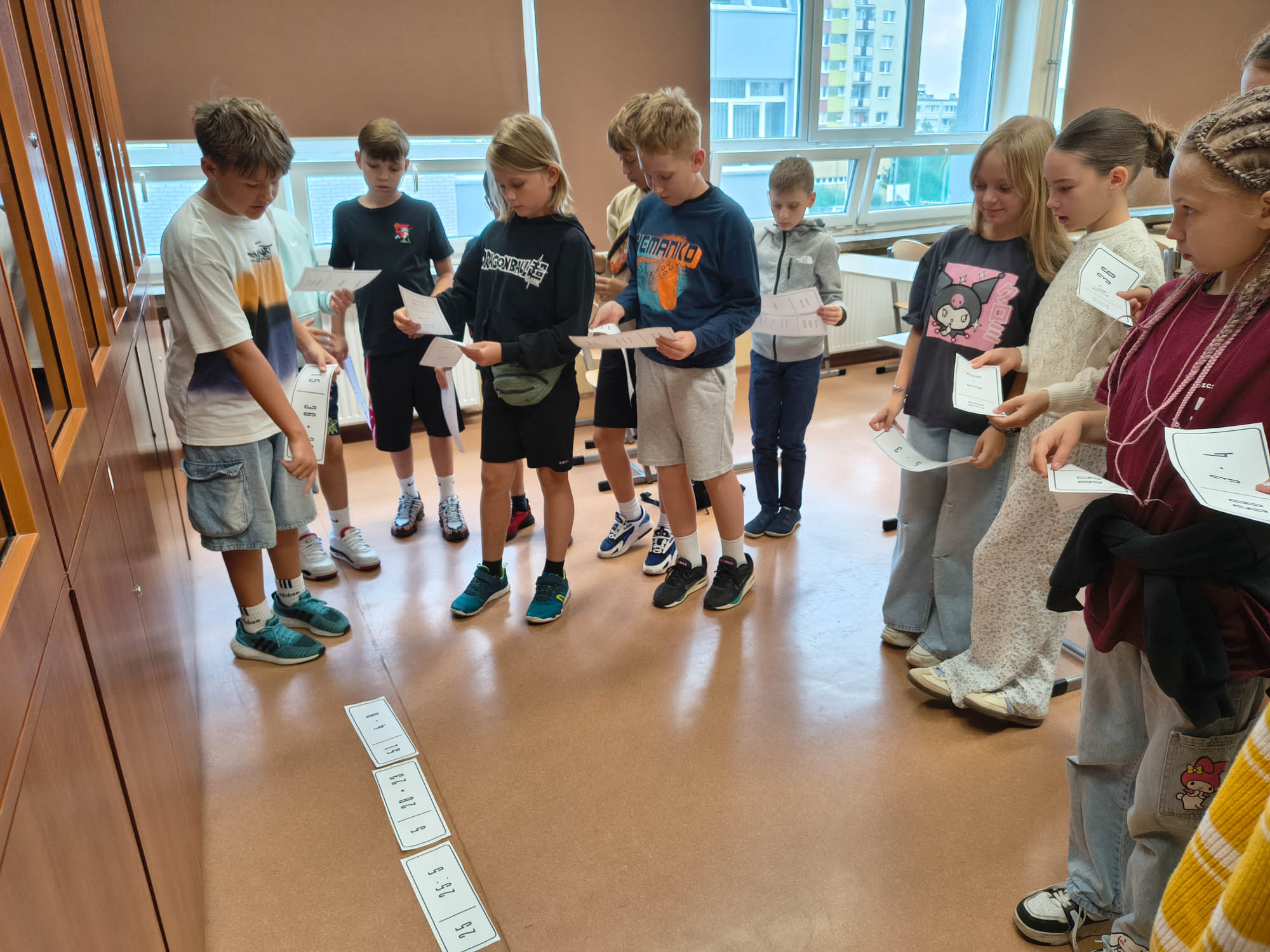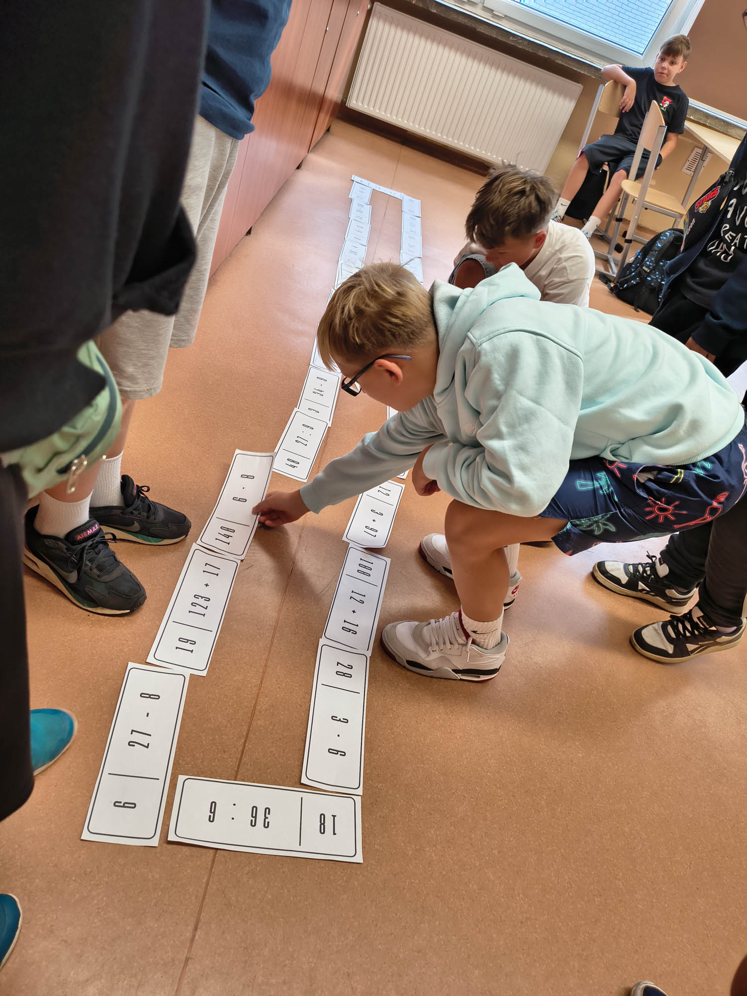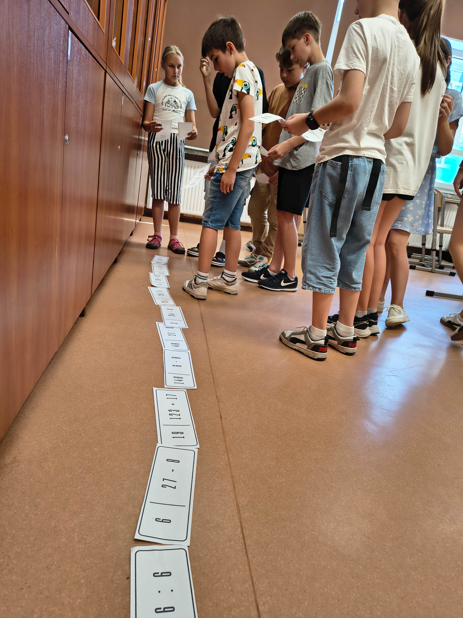 Na lekcjach układaliśmy matematyczne domino z działaniami na dodawanie, odejmowanie, mnożenie i dzielenie, a także graliśmy w bingo, które sprawdzało wiedzę z różnych działów poznanych w poprzednich latach 😉