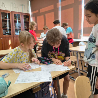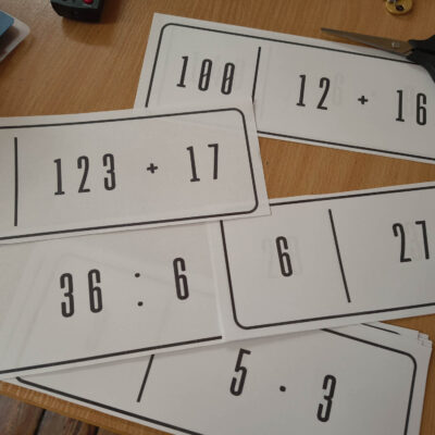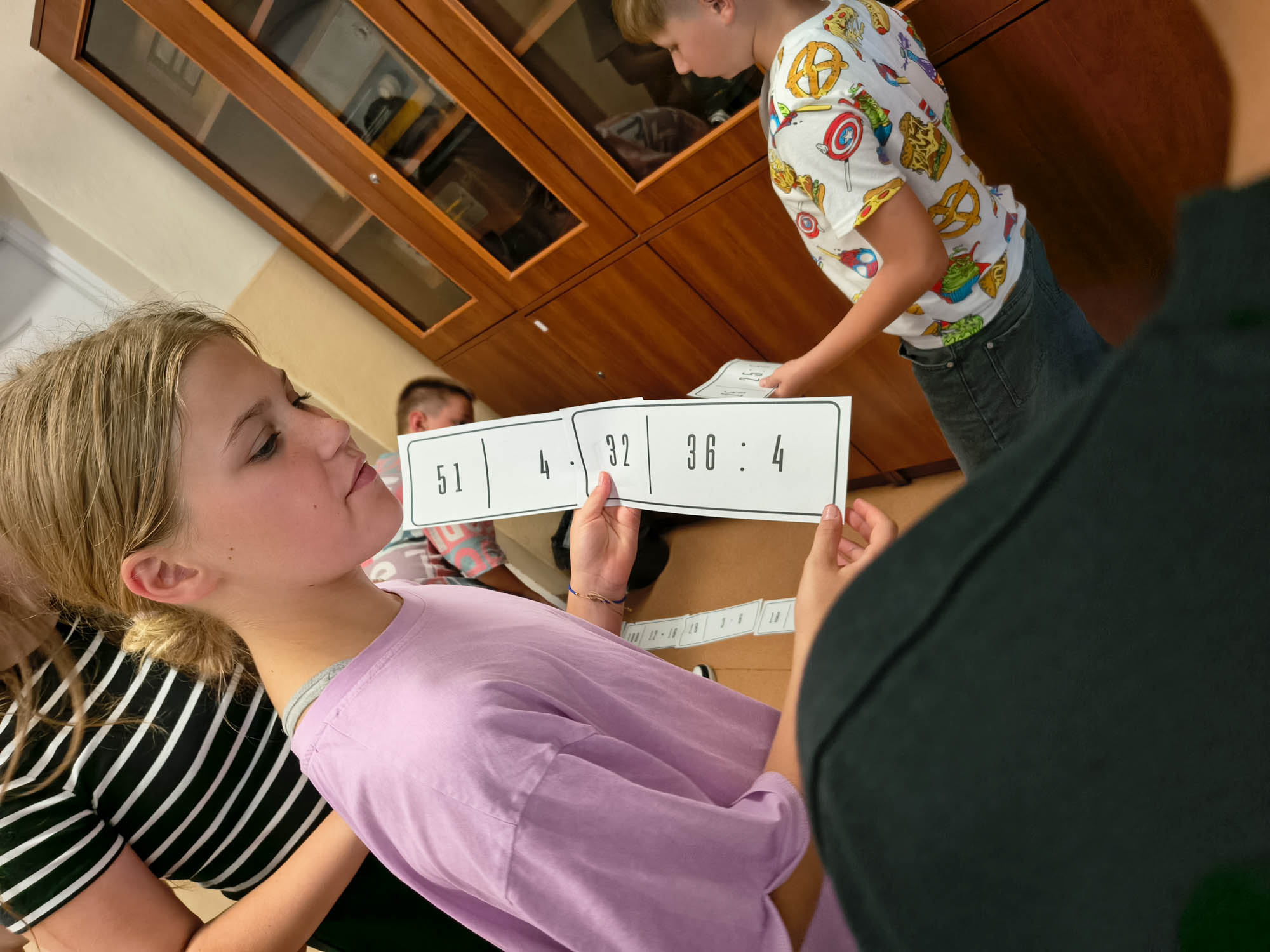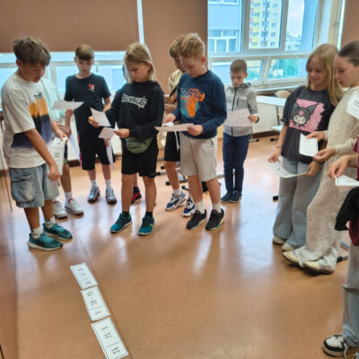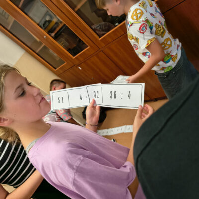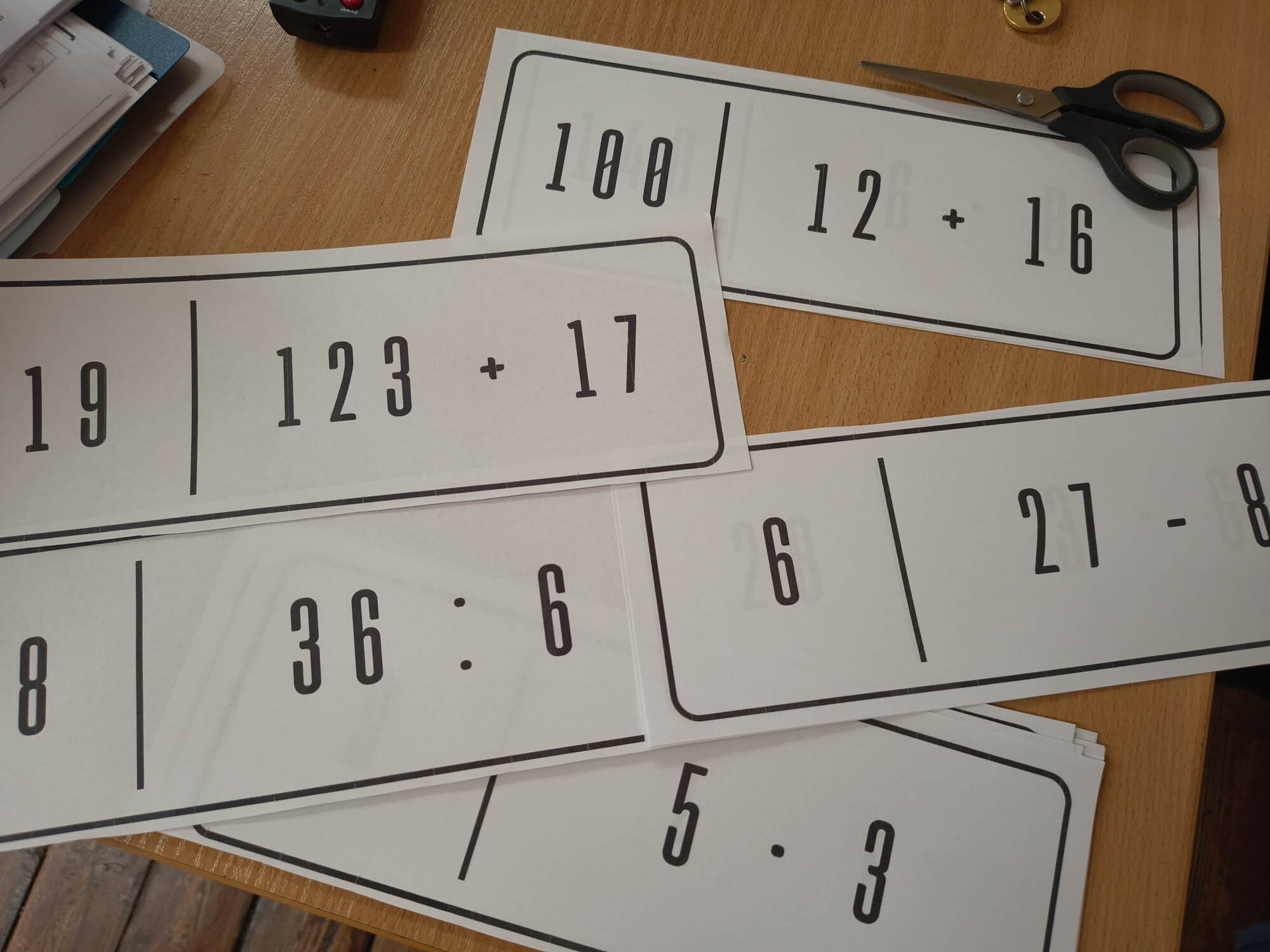 Na lekcjach układaliśmy matematyczne domino z działaniami na dodawanie, odejmowanie, mnożenie i dzielenie, a także graliśmy w bingo, które sprawdzało wiedzę z różnych działów poznanych w poprzednich latach 😉