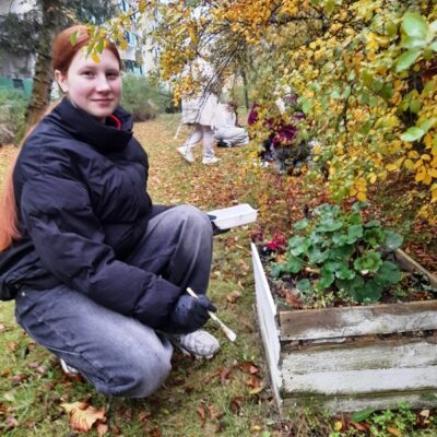 Uczniowie-wolontariusze klasy 8cu zgłosili się na ochotników, aby pomóc dzieciom ze szczególnymi potrzebami emocjonalnymi i uzależnieniami Stowarzyszenia Pomocy dzieciom “Amici” w odnawianiu skrzynek z kwiatami. Uczniowie zdobyli nowe doświadczenia i umiejętności, w szczególności chłopcy przybijali deski do skrzynek młotkiem i gwoździami, dziewczyny – malowały skrzynki farbą. Umiejętności te przydadzą się zarówno w życiu osobistym, jak i zawodowym.