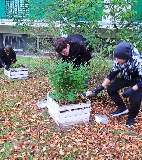 Uczniowie-wolontariusze klasy 8cu zgłosili się na ochotników, aby pomóc dzieciom ze szczególnymi potrzebami emocjonalnymi i uzależnieniami Stowarzyszenia Pomocy dzieciom “Amici” w odnawianiu skrzynek z kwiatami. Uczniowie zdobyli nowe doświadczenia i umiejętności, w szczególności chłopcy przybijali deski do skrzynek młotkiem i gwoździami, dziewczyny – malowały skrzynki farbą. Umiejętności te przydadzą się zarówno w życiu osobistym, jak i zawodowym.