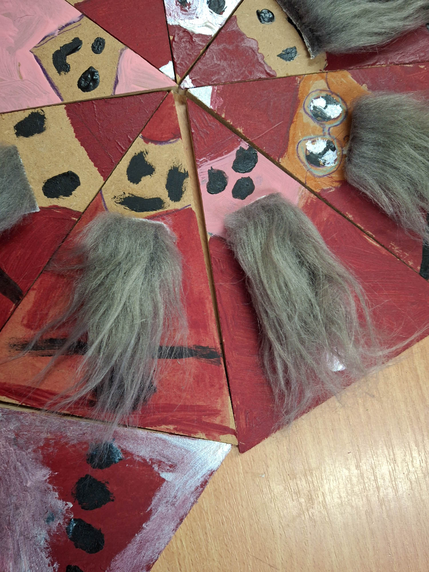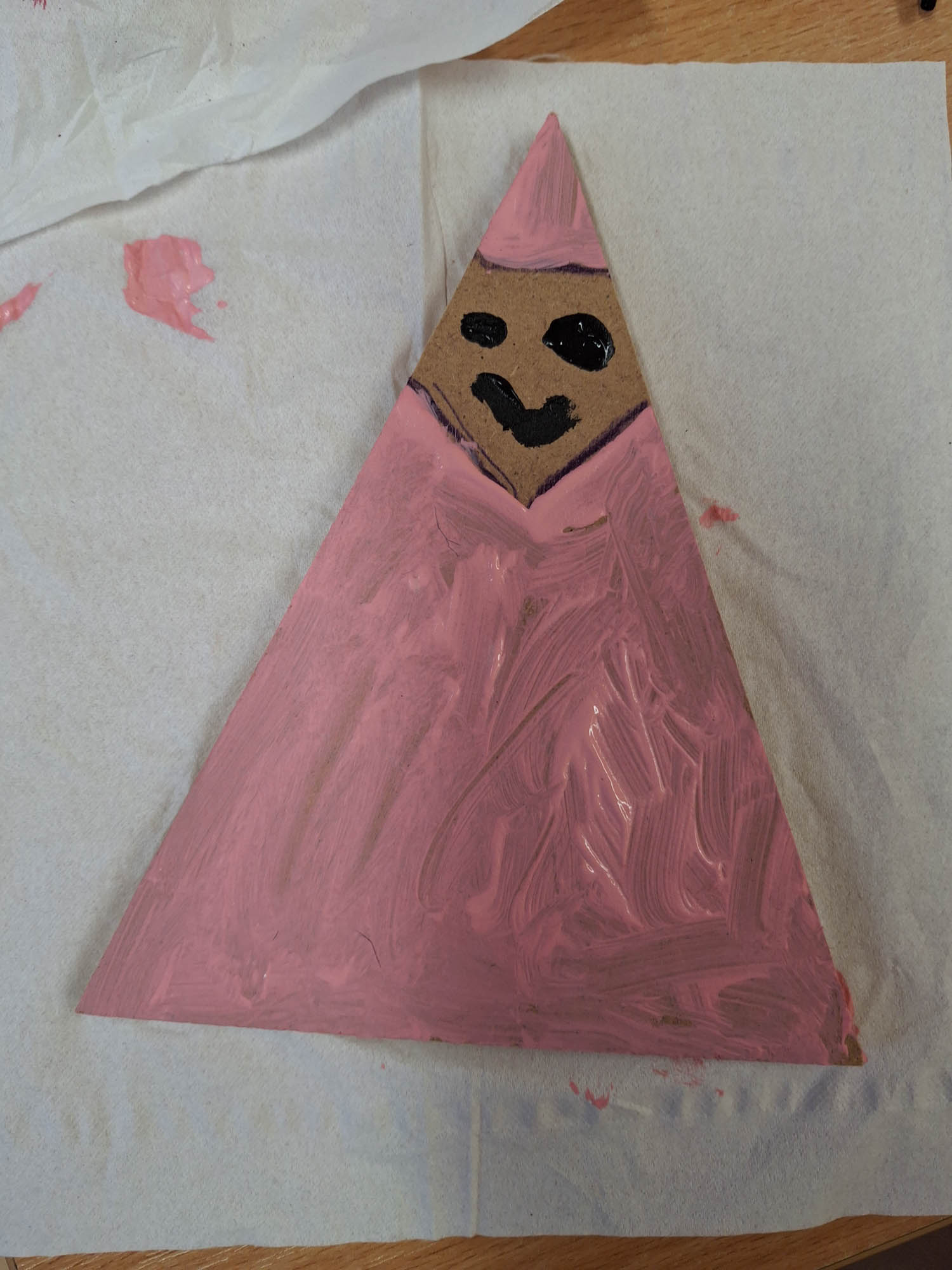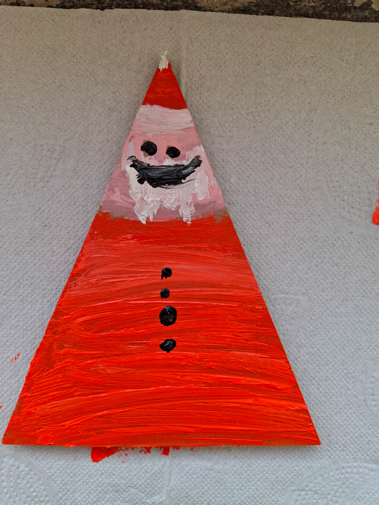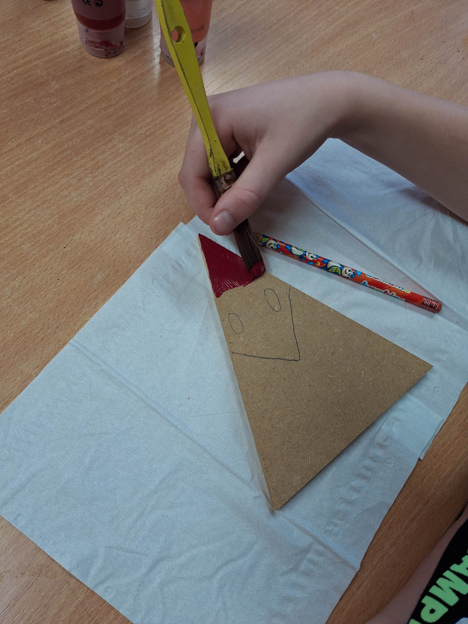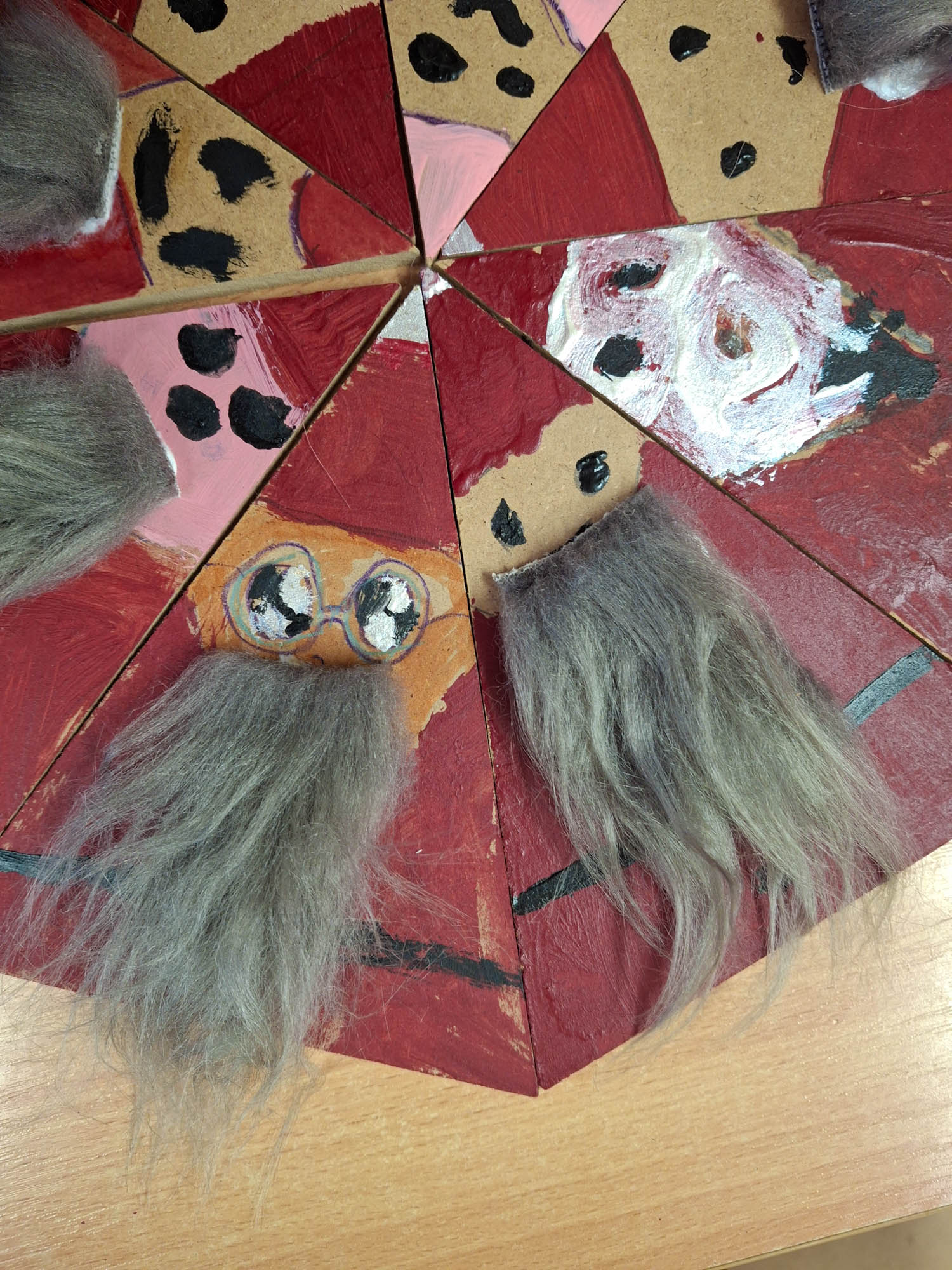 Czy z trójkąta można zrobić Mikołaja? Można! I tak w świetlicy zwykły kawałek drewna zamienił się w Mikołaja. Niektóre mają futerkową brodę, a inne namalowaną. Piękne, wyjątkowe Mikołaje.