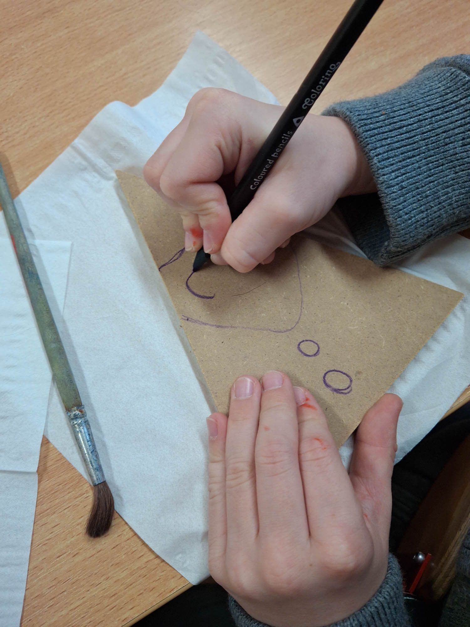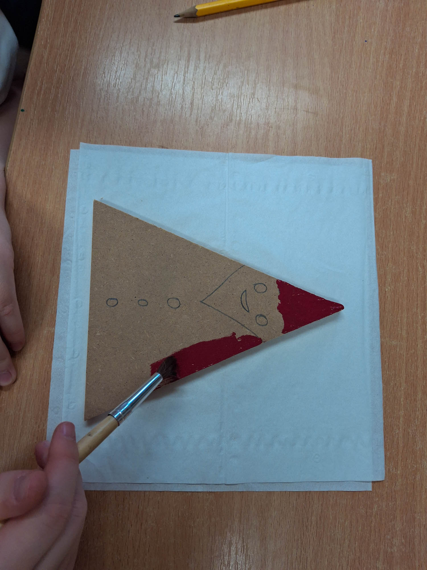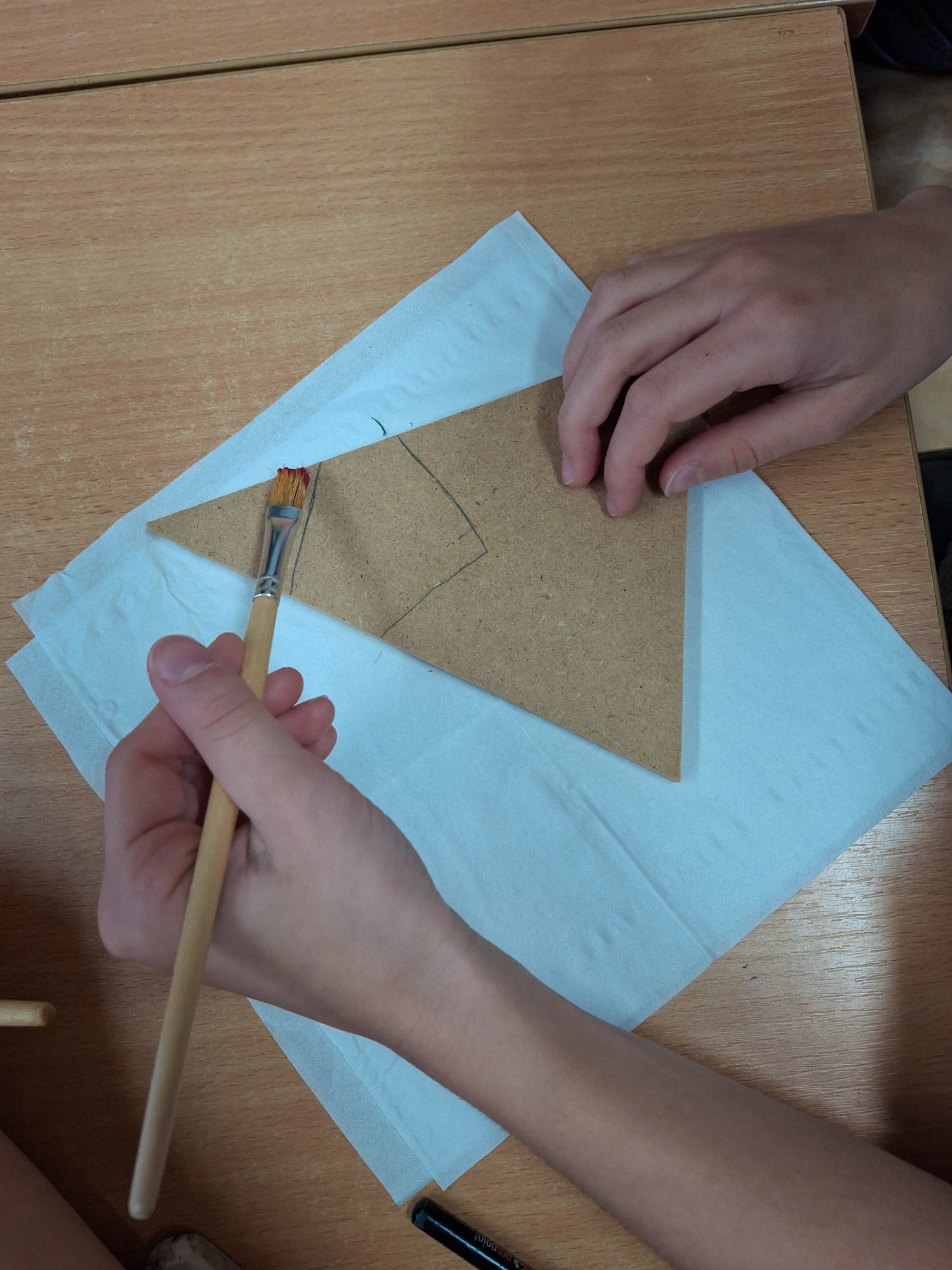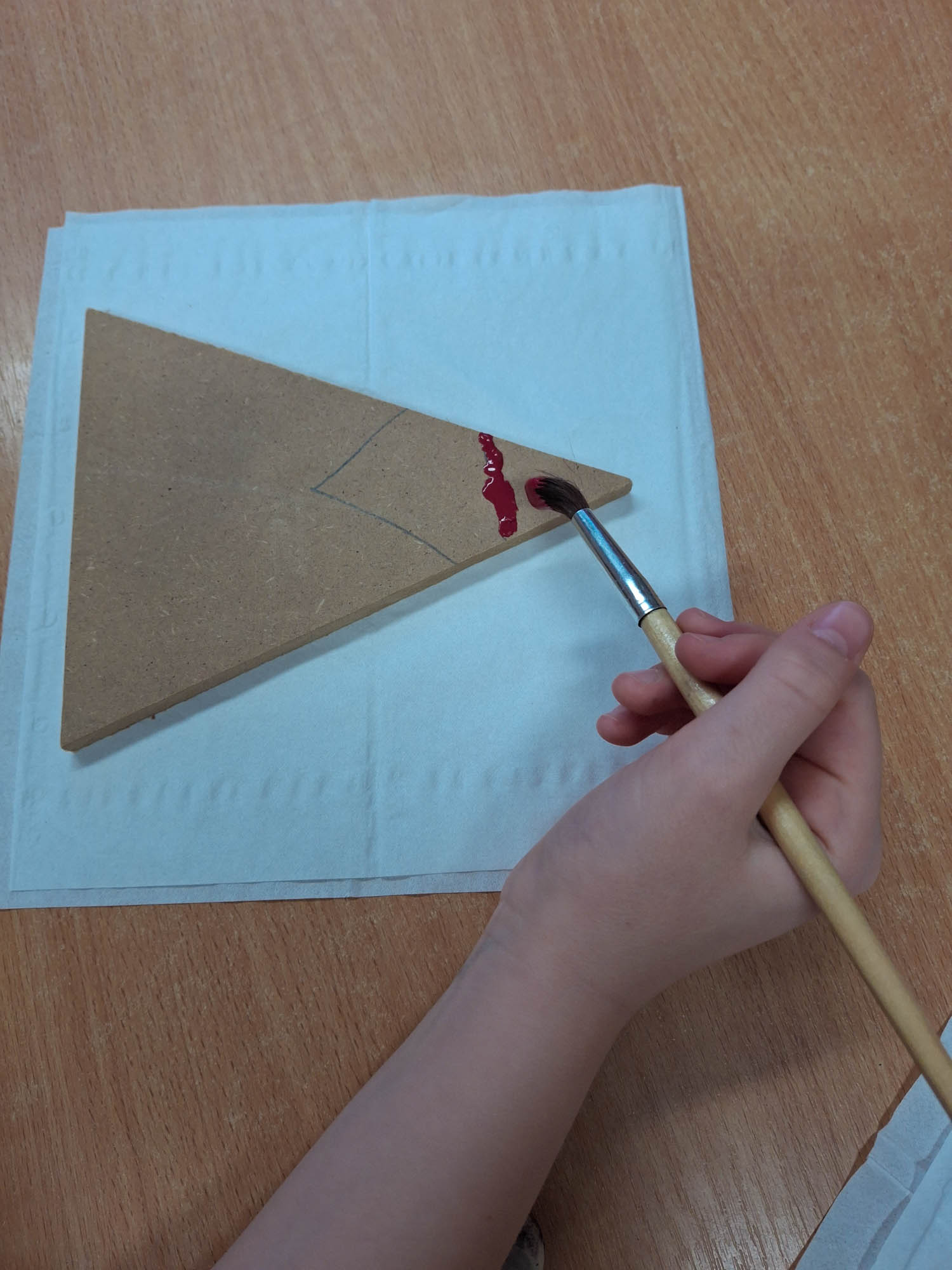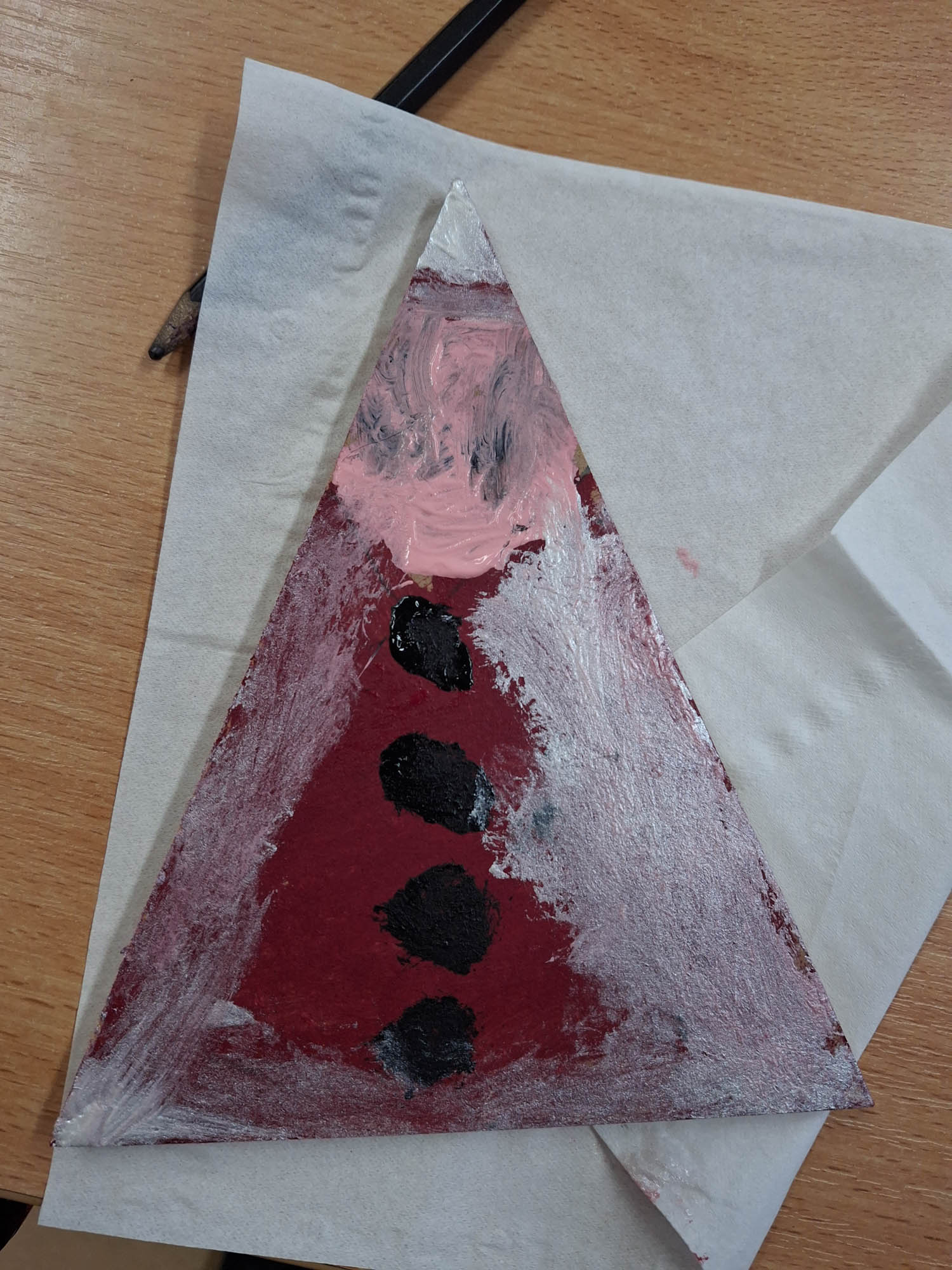 Czy z trójkąta można zrobić Mikołaja? Można! I tak w świetlicy zwykły kawałek drewna zamienił się w Mikołaja. Niektóre mają futerkową brodę, a inne namalowaną. Piękne, wyjątkowe Mikołaje.