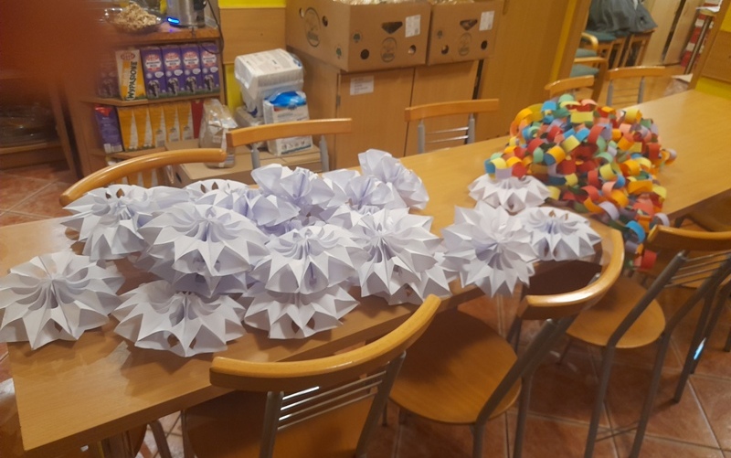 Wolontariusze, niczym prawdziwi Mikołajowie, przynieśli worki pełne ozdób świątecznych — ręcznie wykonane gwiazdki, kolorowe łańcuchy oraz kartki z życzeniami przygotowane przez uczniów klas 8cu oraz 4–5cu. Wszystkie upominki zostały wykonane z ogromnym sercem, niosąc ze sobą życzliwość, ciepło i odrobinę świątecznej magii.