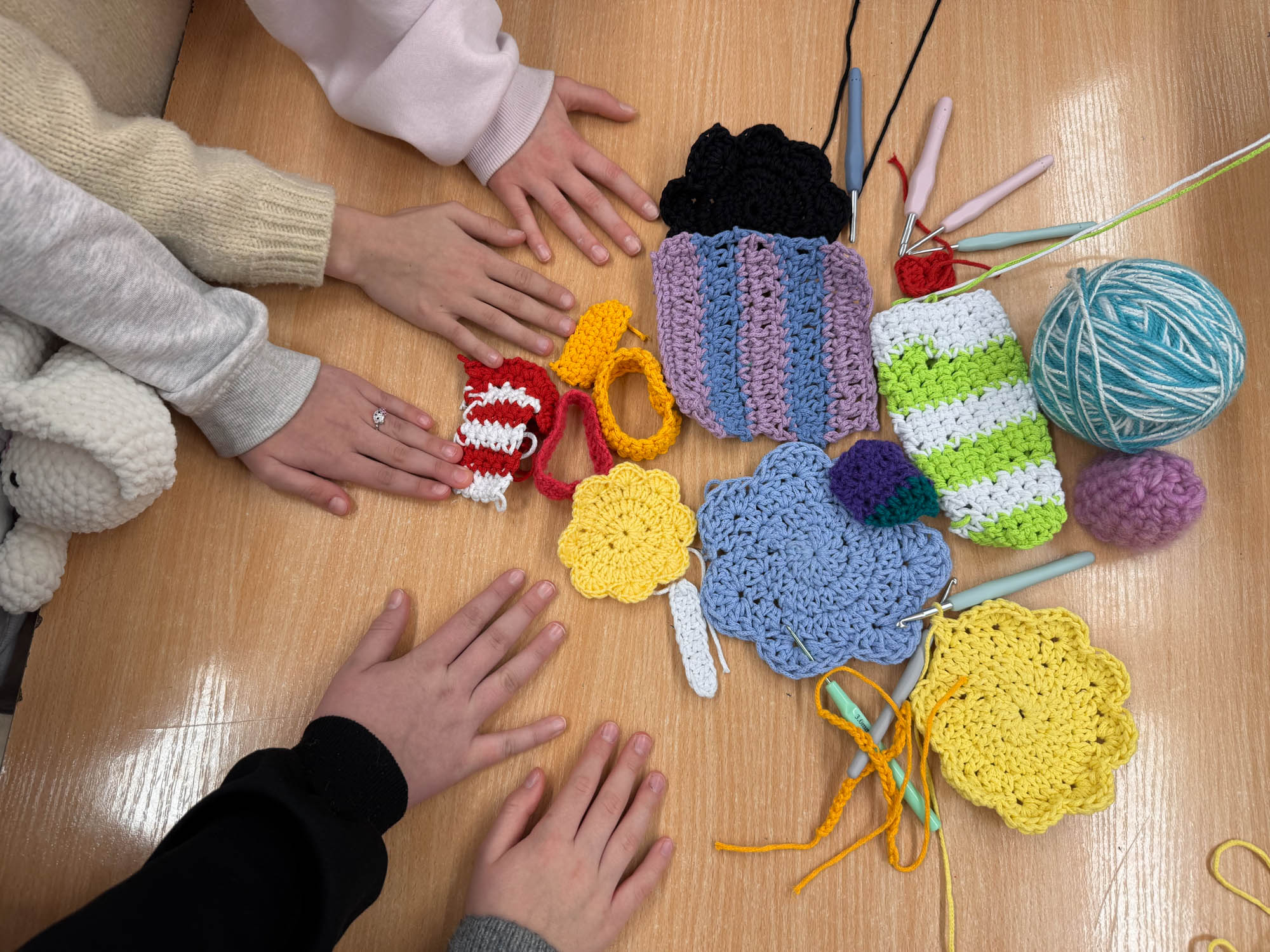 Do naszej grupy dołączyli również uczniowie, którzy samodzielnie podjęli się nauki szydełkowania. Ich prace są kreatywne, przemyślane i efektowne, a także świadczą o systematycznej pracy i rozwijaniu własnych zainteresowań.