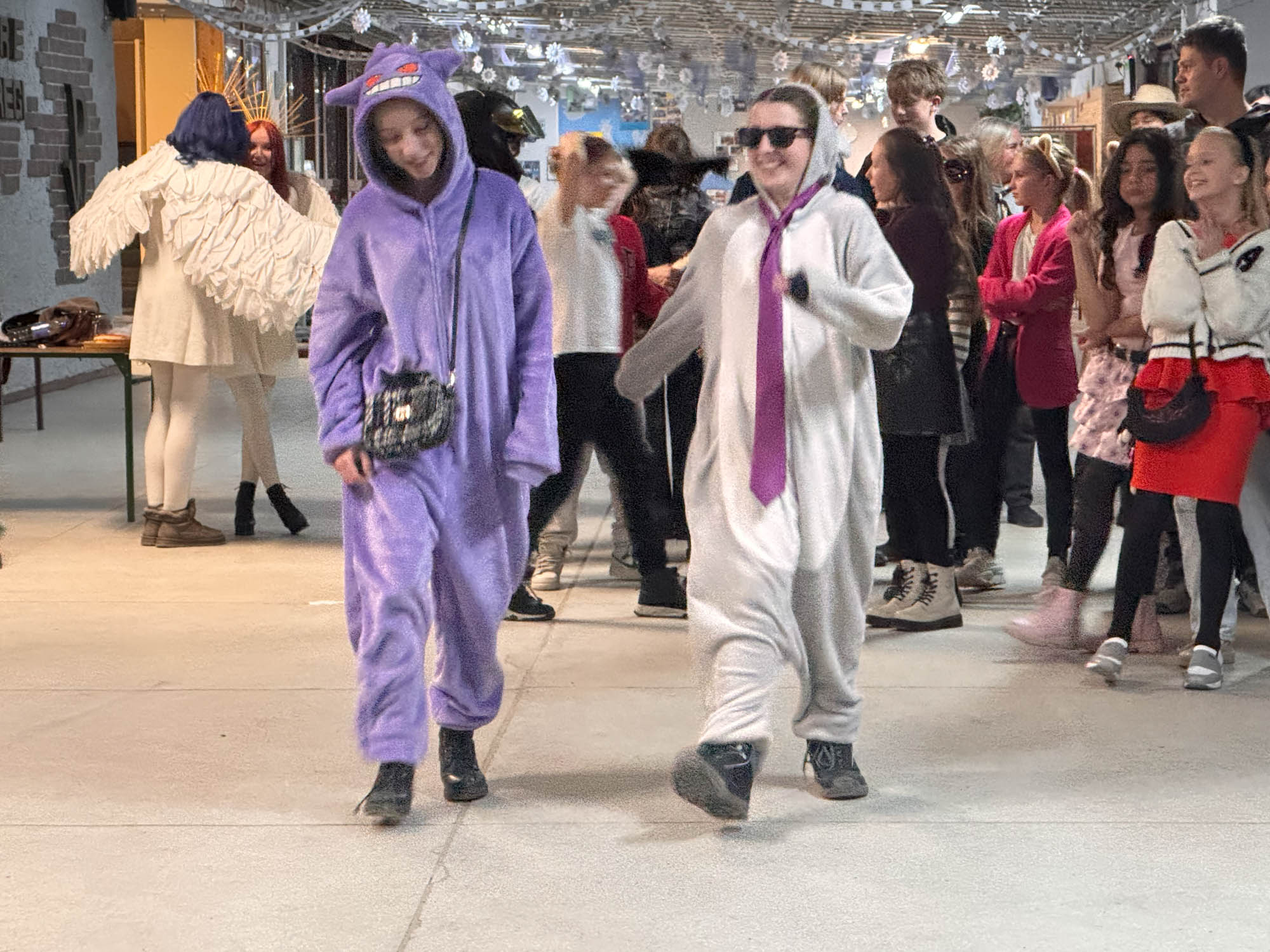 Samorząd Uczniowski udowodnił, że potrafi łączyć pokolenia – na parkiecie wspólnie bawili się uczniowie klas 4-8, fani tanecznych rytmów oraz mistrzowie przebieranek.