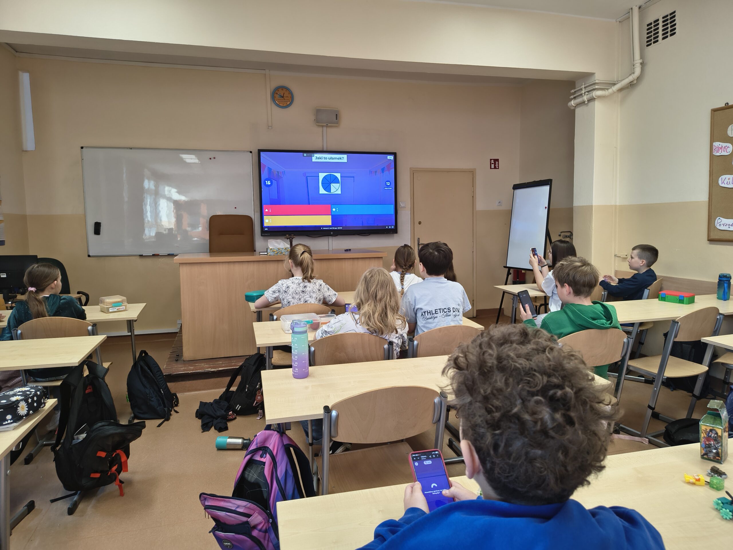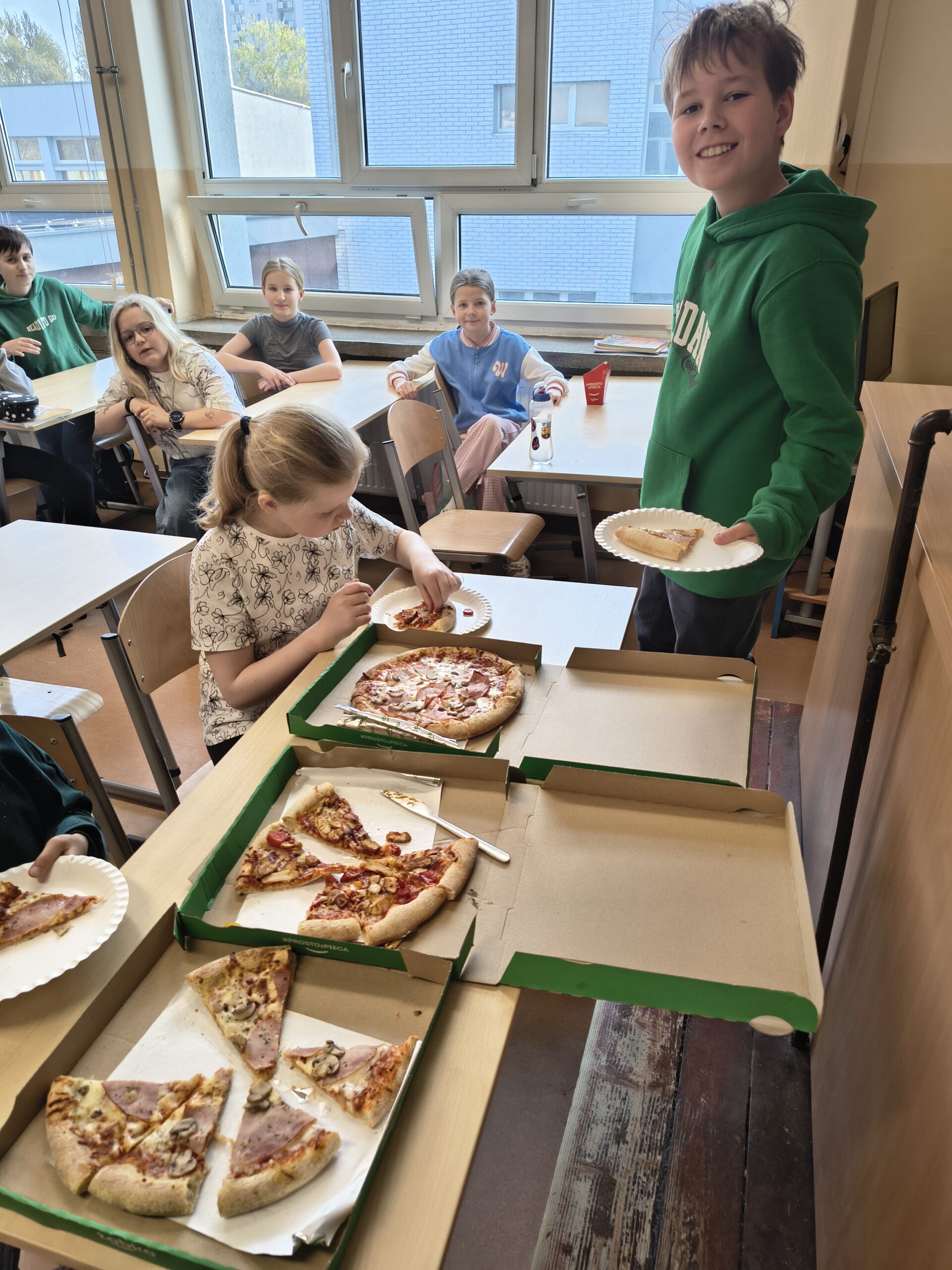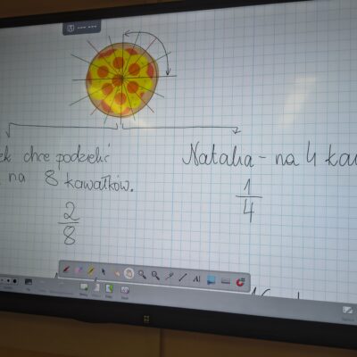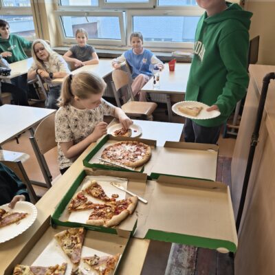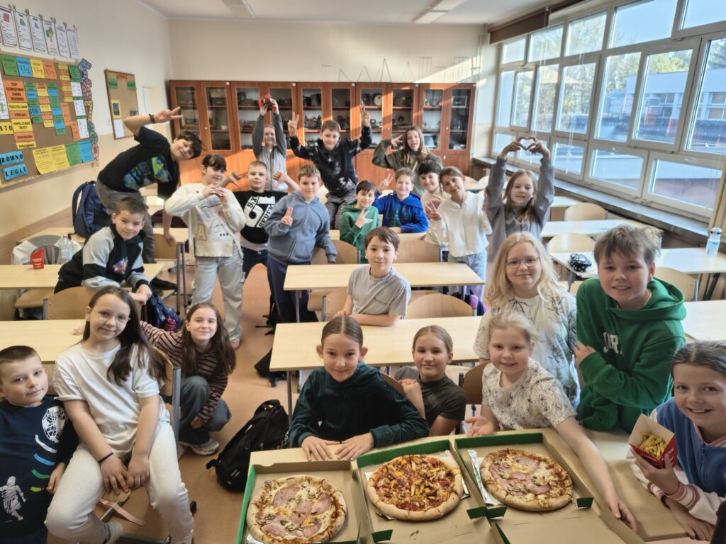 Uczniowie poznają właśnie ułamki, a jak wiadomo – najlepiej uczymy się na konkretach. Dlatego na lekcji pojawiła się pizza, która idealnie pomogła zrozumieć części całości. Było pysznie, ale przede wszystkim bardzo edukacyjnie!