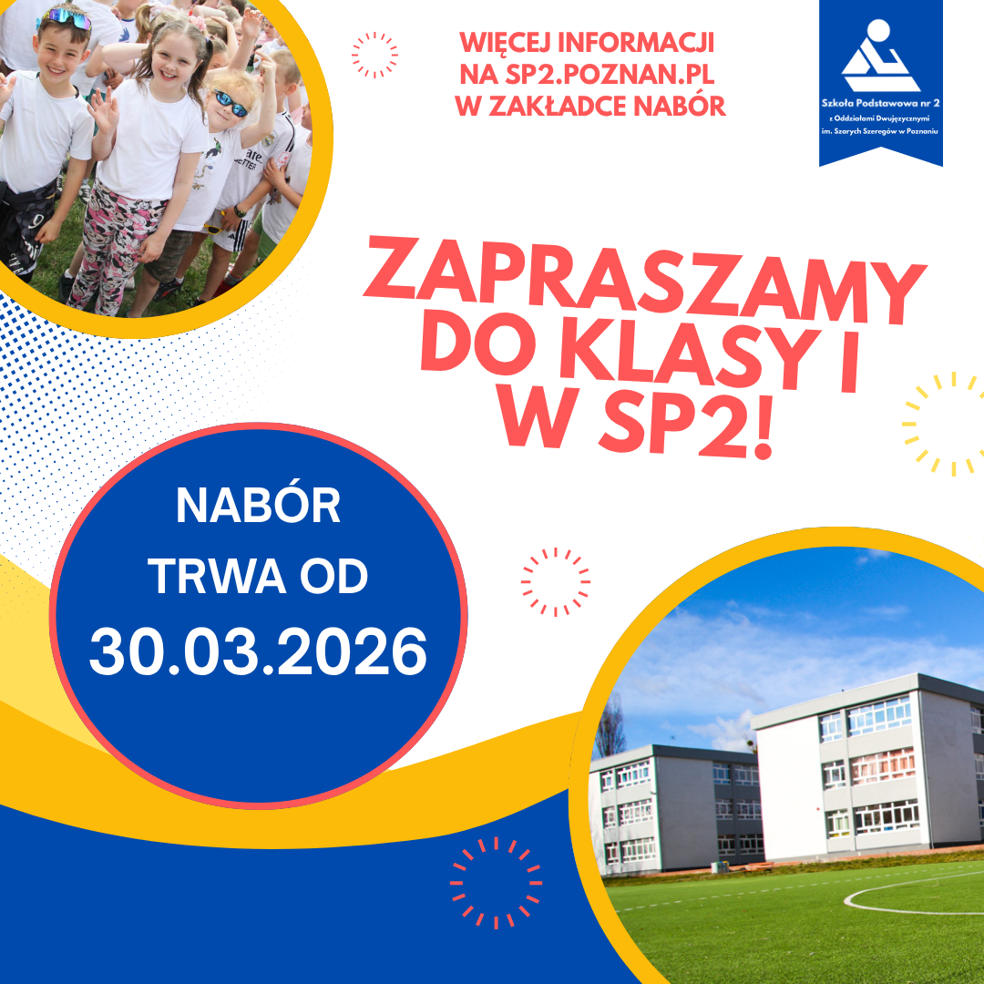 Szkoła Podstawowa nr 2 z Oddziałami Dwujęzycznymi w Poznaniu приглашает Подготовительные отделения для иностранных учащихся Мы предлагаем дополнительные уроки польского, учитель-переводчик контакт www.sp2poznan.pl e-mail: sekretariat@sp2poznan.pl телефон: 61 879 14 41 | 509 101 358 доступ на автобусе: 174, 184, 152, 155, 162, 165, 166, 181, 192, 196, 197 на трамвае: 1, 4, 7, 12, 13 Szkoła Podstawowa nr 2 z Oddziałami Dwujęzycznymi w Poznaniu zaprasza do oddziałów przygotowawczych dla uczniów cudzoziemskich Zapewniamy dodatkowe lekcje języka polskiego, nauczyciela wspomagającego – tłumacza Kontakt www.sp2poznan.pl e-mail: sekretariat@sp2poznan.pl tel.: 61 879 14 41 | 509 101 358 Dojazd autobus: 174, 184, 152, 155, 162, 165, 166, 181, 192, 196, 197 tramwaj: 1, 4, 7, 12, 13